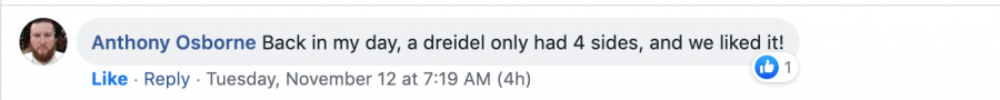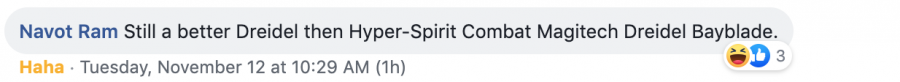 But beyond the joy of seeing a cool/nerdy Jewish product become an instant success, almost better were the comments. I started going through our Facebook page shares and I found myself laughing and smiling. And that means a lot these days. We’re all aware of the rising anti-semitism in the U.S. and around the world; and I’m typing these words from central Israel where folks have been rushing to bomb shelters due to rocket attacks. It’s surreal to be listening nervously to the news while simultaneously reading all these sweet and funny comments about the dreidel.